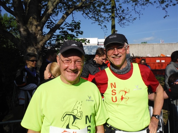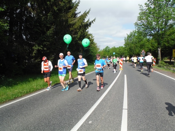 Auf einmal dringt es an mein Ohr: „Oh sieh mal, ein Hermannsläufer.“ Woran haben die mich als mehrfachen Teilnehmer dieses ostwestfälischen Traditionslaufes bloß erkannt? Aber nein, nicht ich bin gemeint, sondern Julian, der jetzt neben mir läuft. Er trägt das entsprechende Finisher-Shirt vom letzten Jahr. Da der Hermann mein Einstieg in den Langstreckenlauf war, ist Gesprächsstoff schon gefunden. So erfahre ich auch, dass Julian mit dem Kassel Marathon noch eine Rechnung offen hat, da er nach dem anstrengenden Lauf durch den Teutoburger Wald im letzten Jahr hier aufgeben musste. Das soll heute nicht passieren und zur gegenseitigen Unterstützung gehen wir die folgenden KM gemeinsam an.