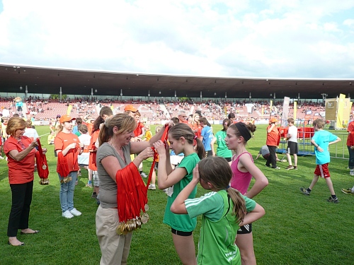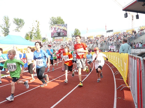Mit seinen über 4.000 Startern gehört er mit zu den größten Läufen seiner Art in ganz Deutschland. Für die Kinder und Jugendlichen war es ein furioses Erlebnis ins neue Auestadion einzulaufen und sich selbst an der großen Videoleinwand zu sehen. Das Stadion war auch sehr gut besetzt durch die vielen Familienmitgliedern, die einen höllischen Lärm machten.