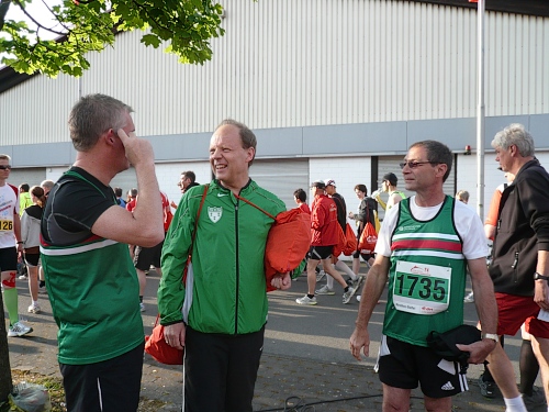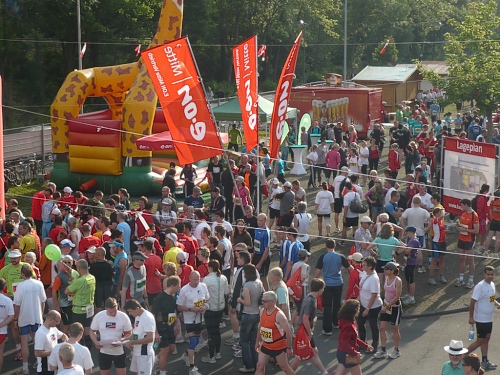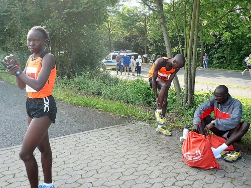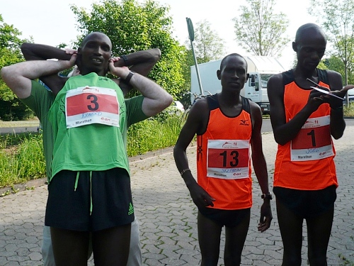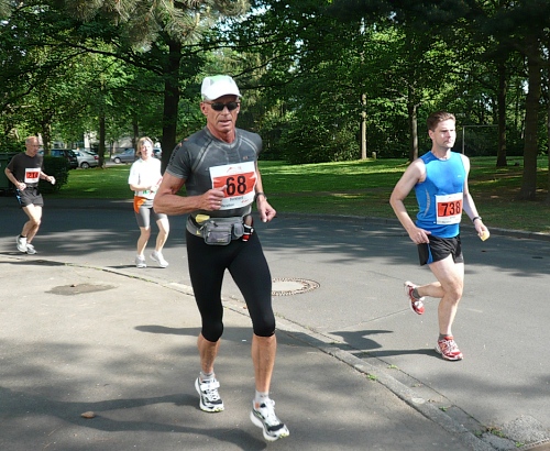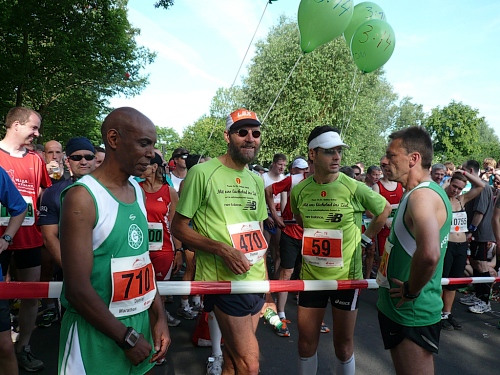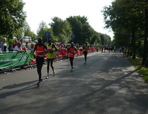 Von der Halle zum Startpunkt sind es ca. 200 Meter. In den letzten Jahren wurde es hier immer sehr eng. Heute wird es am Start nicht so sein durch die entzerrten Startzeiten von Marathon und Halbmarathon. So um die 1000 Läufer nehmen Aufstellung auf der Strasse zwischen Bugasee und Eisenbahn. Die Inline-Skater waren schon um 8.00 Uhr auf ihren Halbmarathon gestartet, für die es dieses Jahr um die Deutschen Meisterschaften geht. Das größte Lauffeld, die Halbmarathonis und die Power-Walker, sind schon seit 8:30 Uhr auf der bekannten und altbewährten Strecke. Auch für die Halbmarathonis gibt es BUZL (Brems- und Zugläufer) für unter 1:30, 1:45, 2:00 und 2:15.