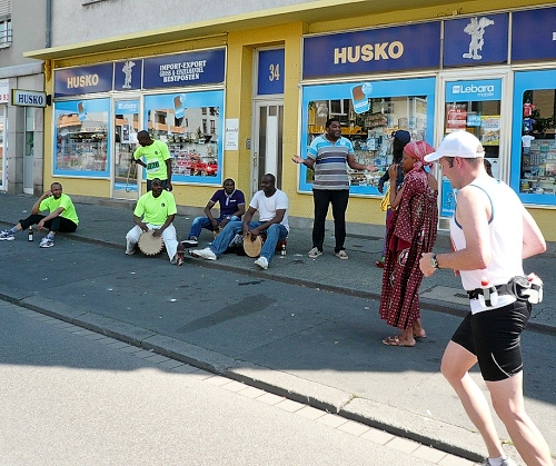 Nach Überquerung der kleinen Losse erreichen die Läufer den Stadtteil Forstfeld. Das Forstfeld ist eine ruhige Wohnsiedlung – mit einer Ausnahme: Am Häschenplatz ist ein richtiges Volksfest und die Läuferschar wird angefeuert mit lauten Rufen und fetziger Musik.