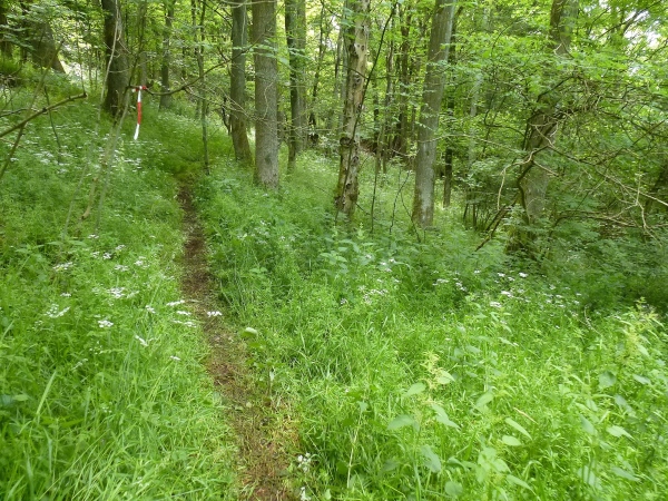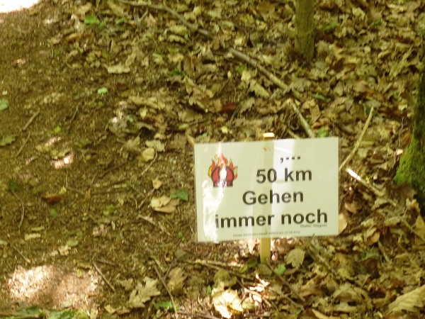 Die Strecke müsste mir eigentlich nach vor viel Laufspass bereiten, aber ich schleppe mich nur noch mühsam voran. Schade, denn die schmalen Pfade winden sich wieder in voller Pracht durch den Wald. Nach so langer Trockenheit finden wir nur äußerst selten Schlamm, doch auch zu trockener Untergrund erhöht die Rutschgefahr. Der trockene Sand liegt so locker auf dem Pfad, dass die Schuhe manchmal keinen richtigen Halt finden. Heute kommt wohl kaum jemand ohne Stürze durch.