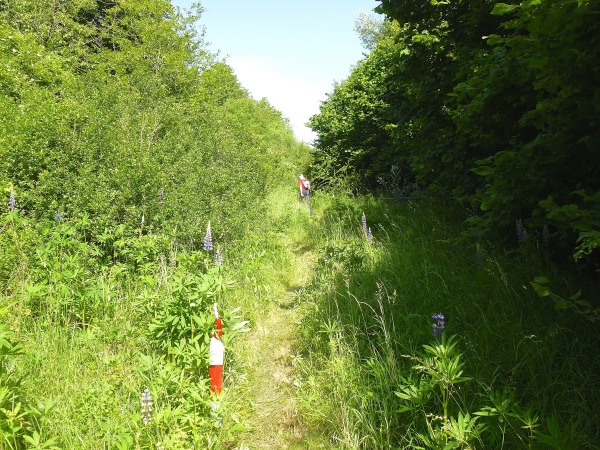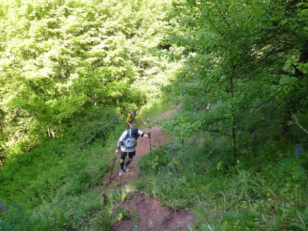Wenige hundert Meter vor der VP zweigt die Strecke des Marathon-Trail ab. Viele andere Aussteiger laufen nun auf der 45 km Route weiter, wobei aber von Anfang an klar ist, dass am Ziel nur die Leute gewertet werden, die ihre gemeldete Strecke laufen, also ein Umsteigen unterwegs nicht zählt.