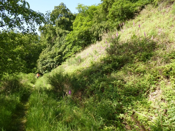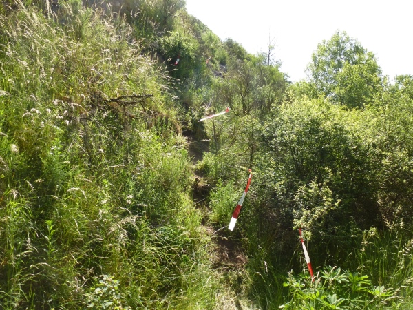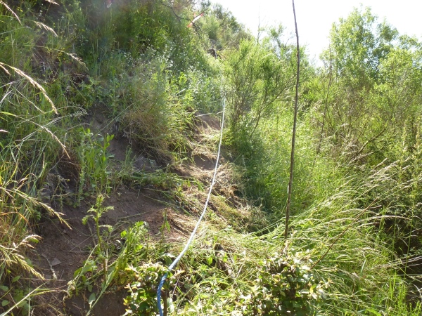 Einmal passe ich nicht auf und steige geradeaus weiter. "Hier hätte Eric auch ein Steil spannen müssen!" fluche ich, als meine Schuhe auf rutschigem Sand am extrem steilen Hang keinen Halt finden. Nach einigen sehr mühsamen Höhenmetern merke ich, dass der richtige Weg weiter unten links abgezweigt wäre.