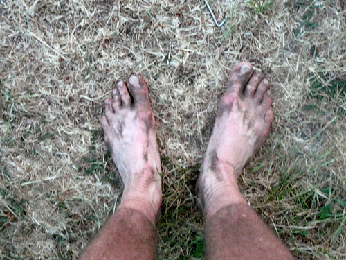 Ich krebse auf allen Vieren durch eine Urlandschaft, die ihresgleichen sucht. Zwischen Bäume, wo meine Schultern sich verkeilen, Wurzeln, die ich auf der Suche nach Halt mit riesigem Staubwirbel aus dem brösligen Untergrund reiße. Nehme keine Rücksicht auf eklige Spinnennetzte oder lebende Bäume, ich reisse alles mit! Es ist dunkel, es ist der brutalste Abschitt des Laufes. Es ist ein staubiger, atomwolkenartiger Kampf duch die beginnende Dunkelheit der eric´schen Heimat.