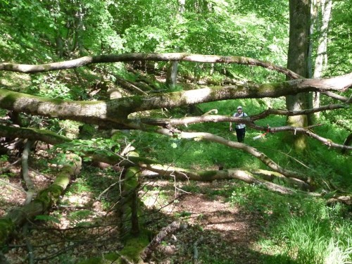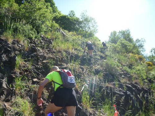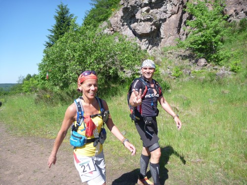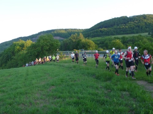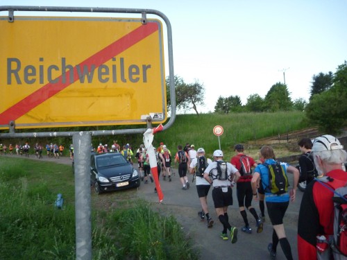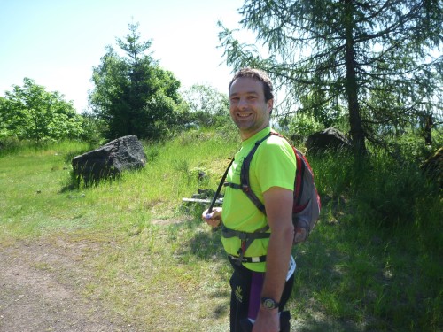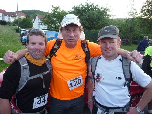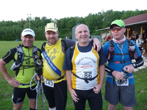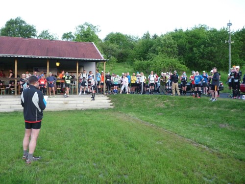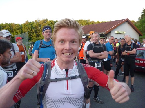 Das Denkmal ist ganz in der Nähe des Sportplatzes, doch für eine Besichtigung hat niemand Nerven, denn wir treten einen der härtesten Trailläufe Deutschlands an. Eric, der Macher des Keufelkopf-Ultra-Trails (KUT) hat jedes Jahr mehr zu bieten..Diesmal sind es 86,2 km mit 3630 Hm. Läuferuhren ohne Nivelierung spechen von 4300 Hm.