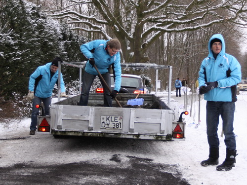 Nach fünf Minuten umpacken geht dann die Reise an den Niederrhein los. Tief „Daisy“ sorgt zwar für Schlagzeilen in der Presse, aber das Luder lässt uns wenigstens hier die Ruhe. Lediglich nördlich von Frankfurt beeinträchtigt Seitenwind die Fahrerei. Doch dann bei Oberhausen ist das Gemütliche vorbei. Dicke Schneeflocken machen die Autrostrada schnell weiß und glatt. Auf den letzten Kilometern auf der Landstraße nach Kevelaer sorgen dann Schneeverwehungen für ein noch langsameres Tempo.