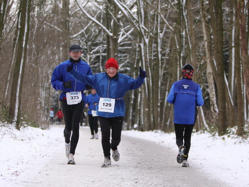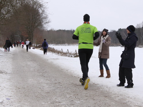 Letzte Runde. In einer halben Stunde ist es vorbei, so motiviere ich mich. Auf dem Rundkurs zieht es mittlerweile wie Hechtsuppe, oder es kommt mir halt so vor. An einer windgeschützten Ecke haben sich treue Fans versammelt. Von Runde zu Runde sind es da mehr geworden. Jeder der Vorbeilaufenden wird namentlich angesprochen. Ist eine schöne Idee, dass der Vorname auf der Startnummer steht.