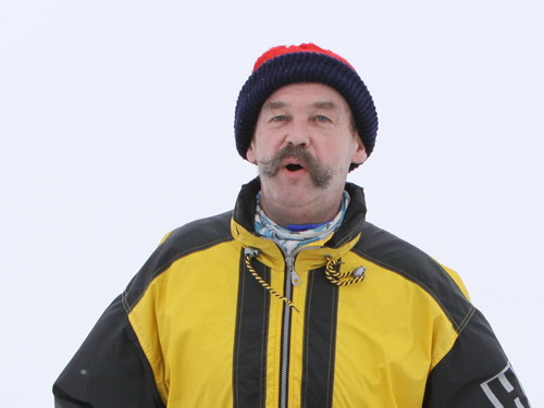 Am Wendepunkt ist nun das Geläuf tiefer geworden. Der locker gewordene Schnee wird während des Rennens per Hand und Schneeschippe weggeschoben. Kraft kostet es hier nicht nur mir. Gut, dass uns Rockmusik aus der Konserve weitertreibt. Auch ein fachkundiger Moderator sorgt für Informationen unter den zahlreichen Zuschauern und Spaziergängern.