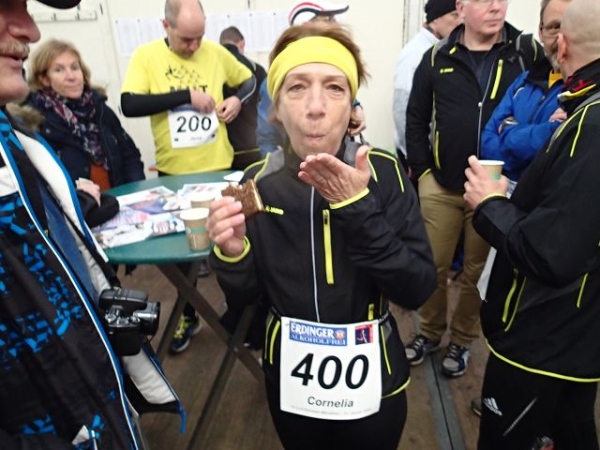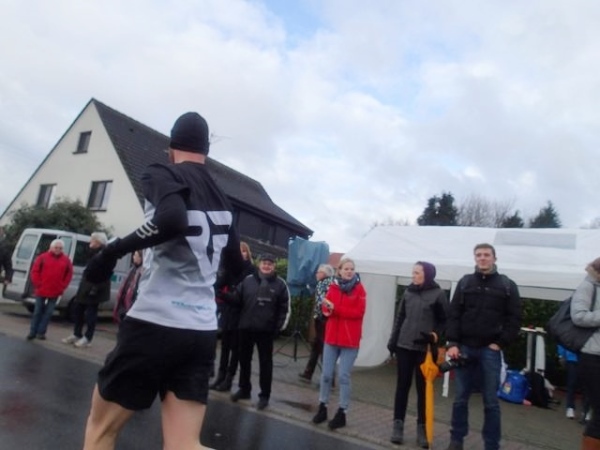 Interessant ist immer wieder das Begegnungsstück von ca. 800m hin und 800 m zurück. Hier sieht man, wie sich der Abstand zu den Verfolgern verändert. Und hier spürt man denn auch immer wieder, warum es so viele „Wiederholungstäter“ gibt. Die Stimmung ist ausgezeichnet. Man trifft eigentlich alle Bekannten wieder. Cornelia Bullig, Rüdiger, Werner und Bernd von M4Y, Doris, und die starke Truppe aus Duisburg rund um Henning und Jürgen. Auch viele Mauerläufer, die ich vom 100 Meilenlauf her kenne, sind am Start. Eigentlich sind sie alle da, die Sammler, Rekordler und sonstigen Laufverrückten. Jetzt kann eine neue Laufsaison beginnen.