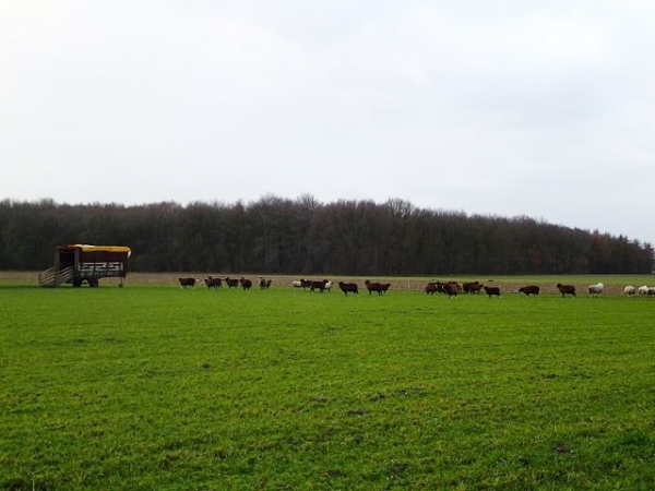 Kurz nach dem Start geht es auf eine 1,5 km lange Gerade, die uns zum kleinen Ort Heide bringt. Die Schafherde ist sichtlich verwundert ob des heutigen „Auftriebs“. Dabei könnten die Schafe eigentlich mitlaufen, wenn sie haben ja auch „Startnummern“, im Ohr nämlich. Machen sie auch, zumindest bis der Zaun sie aufhält.