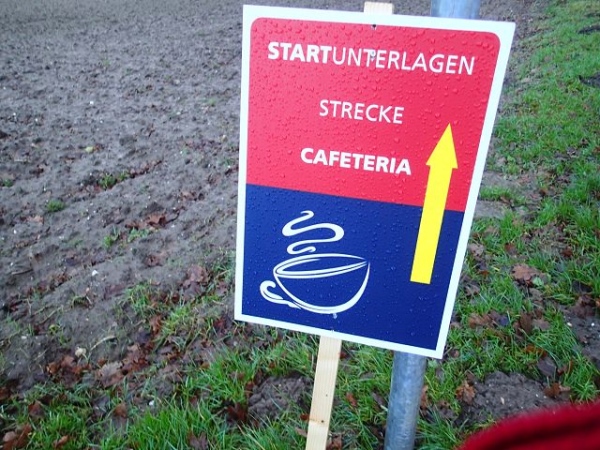 Peter Wasser, der 1. Vorsitzende der LLG Kevelaer und mein „alter Laufkumpel“, ist wie immer an vorderster Front dabei und sorgt mit seiner Mannschaft für den ruhigen und sorgenfreien Ablauf der Veranstaltung. Im dritten Jahr findet der Start nun nicht mehr an der Jugendherberge statt, sondern im Sportpark des DJK Twisteden. Dieser liegt unweit des Vergnügungsparkes „Irrland“ bei dem wir auch parken dürfen. Der angeschlossene Flughafen Irrland ist wohl wegen verirrter Flugzeuge geschlossen.
