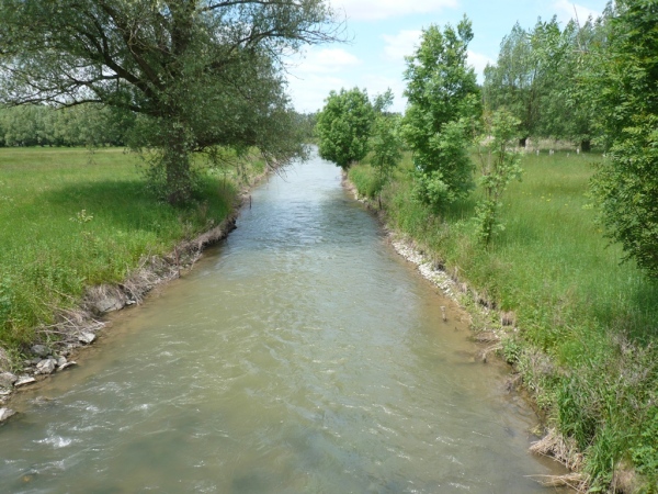 Wir unterqueren die Eisenbahnlinie und laufen am Ortsende neben dem Industriegebiet Breite Werl entlang. Die Bundesstraße ist heute extra für uns Läufer gesperrt und überall von Polizisten abgesichert. Zur Linken haben wir Natur pur. Am Ende der Straße biegen wir ab auf die Stadtteiche, die ich aber nirgends entdecken kann. Wir überqueren die Heder, die ein 11,8km langer Nebenfluss der Lippe ist.