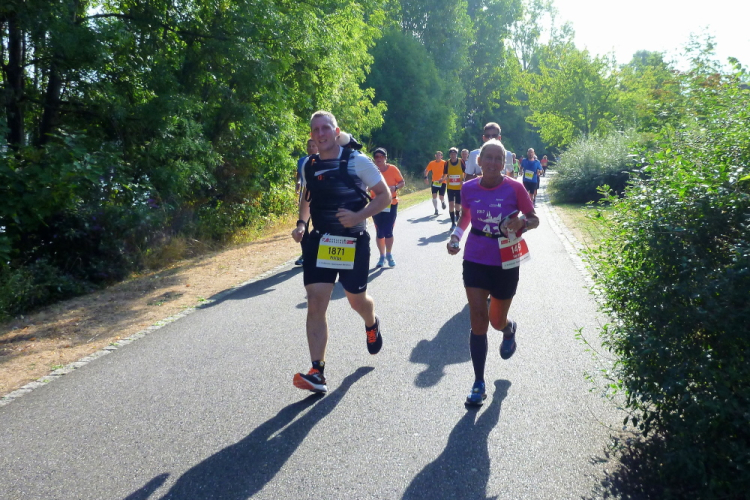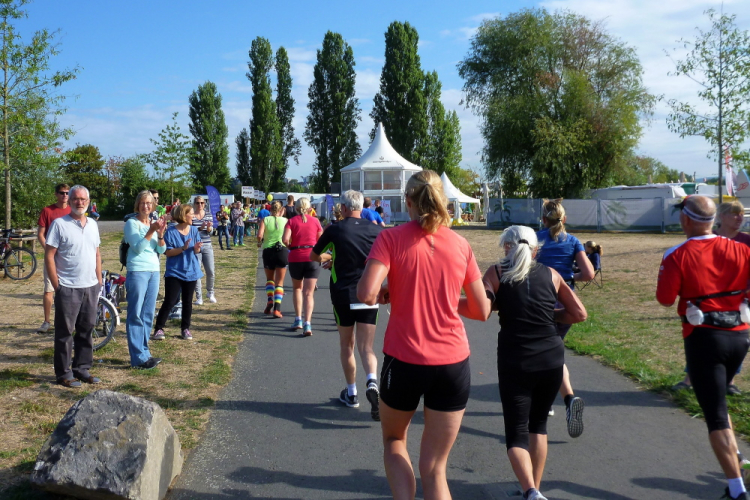 Flache, zweimal zu laufende 21,1 km-Runde (137 Höhenmeter insgesamt). Zielzeit 6 Stunden. Zugläufer für 4:00 und 4:30 Std.