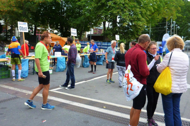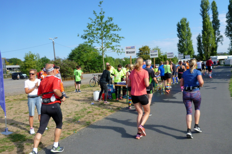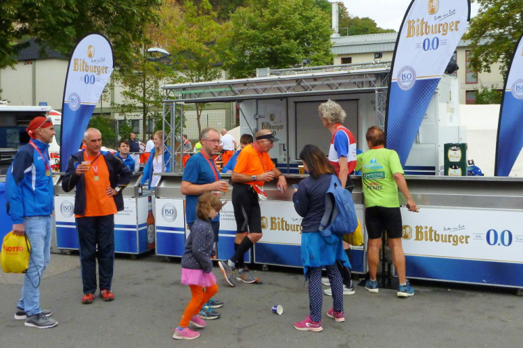 An der Strecke und im Ziel mit Brohler Mineralwasser, Brohler Iso-Fit, Xenofit, alkoholfreies Bitburger 0.0, Bananen, Äpfel, Salzgebäck, Müsliriegel, Studentenfutter, Laugengebäck etc.