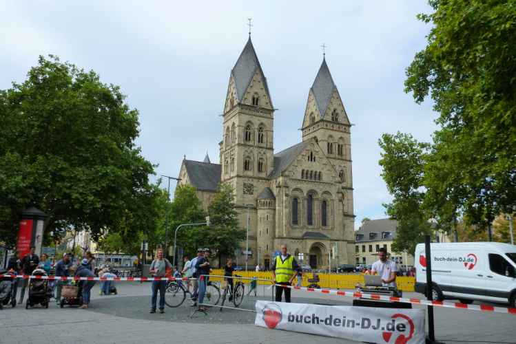 Die Marathonmesse logiert unverändert zwar parkplatzmäßig günstig, aber für Laufkundschaft nicht wahrzunehmen, in der CGM-Arena (Sporthalle Oberwerth) ganz im Süden der Stadt. Damit auch wirklich alle Koblenzer von dem Ereignis etwas mitbekommen, gehört das Veranstaltungszentrum ins Herz der Stadt: Ich favorisiere nach dem Bonner Vorbild ein Zelt in der Altstadt, z.B. auf dem Münzplatz. Denn an dem kommt niemand vorbei, ohne von dem großen Ereignis Notiz zu nehmen.