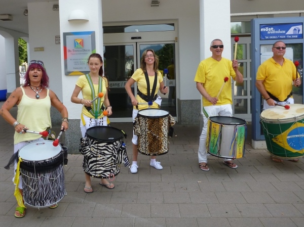 Eine Sambaband macht Dampf an der Ecke zum Zielkanal und dann muss ich noch an meiner Startnummer rütteln. Denn die hängt am Arsch. Zum Glück ist nicht der Läufer am A. Und danach geht es ins Ziel.