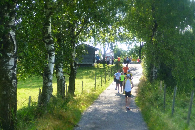 Nach der Seeumrundung geht es eineinhalb Kilometer auf bekanntem Weg noch einmal durch das Wäldchen, bevor wir nach Süden abdrehen und abwechslungsreich durch Wald und Flur laufen. Die ersten großen Kuhherden tauchen auf. Auch auf der Herfahrt hatten wir schon viel Vieh grasen sehen. Auf Plakaten wurde gefordert, die Regierung müsse jetzt endlich die Milchbauern unterstützen, die hier nach Wegfall der Milchquote aufs falsche Pferd, bzw. Kuh gesetzt hätten. Wie verträgt man eigentlich Kuhmilch beim Marathon? Das haben wir noch nicht getestet.
