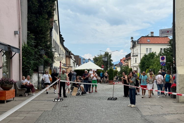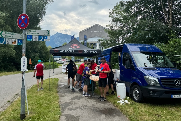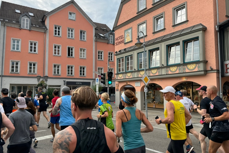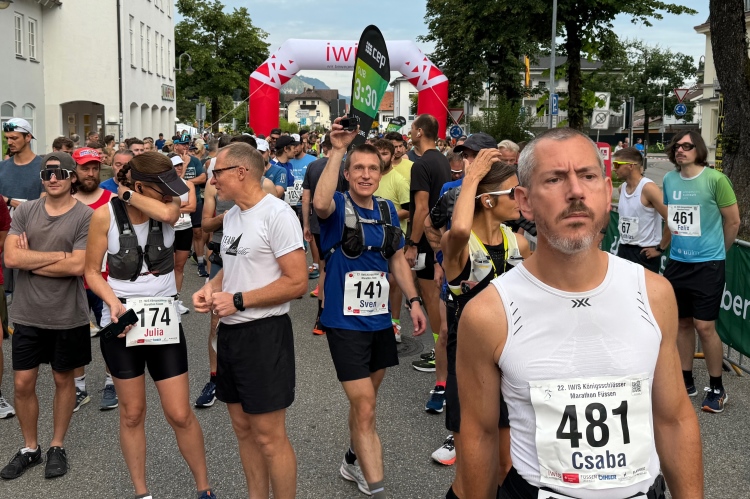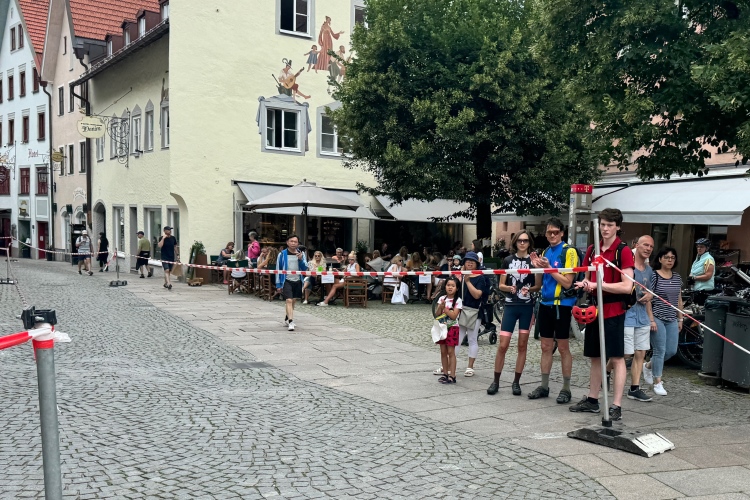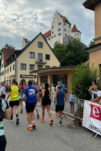 Der Marathon und die Läufe über 10,5 und 21 km bieten einem internationalen Publikum die Gelegenheit, neben einem Besuch des renommierten Schlosses Neuschwanstein auch etwas für die sportliche Ertüchtigung zu tun. Das Veranstaltungszentrum des Marathons befindet sich am Rande der Füssener Altstadt in einem Zelt auf dem Parkplatz Morisse, direkt neben dem Start- und Zielbereich. Da die Startnummernausgabe erst um 15:00 Uhr beginnt, statten wir vorher noch einem der vielen Eiscafés (“nur Bargeld”) einen Besuch ab.