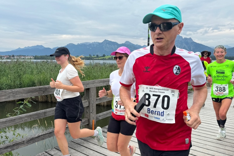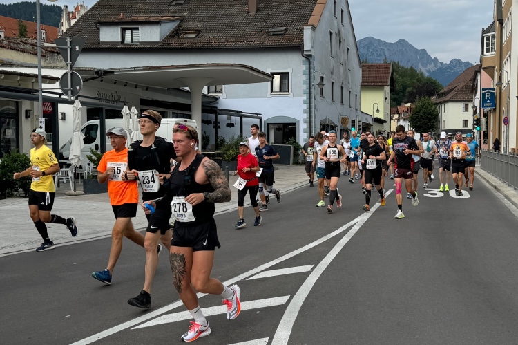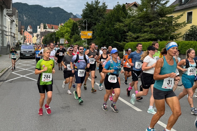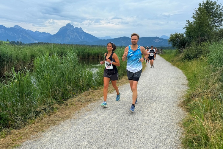 Die Strecke könnte man so beschreiben: kreuz und quer um den Hopfensee, Halbmarathonmarke am Festspielhaus, dann ein langes Stück am Forggensee entlang und zurück nach Füssen, final eine Schleife um den Schwansee.