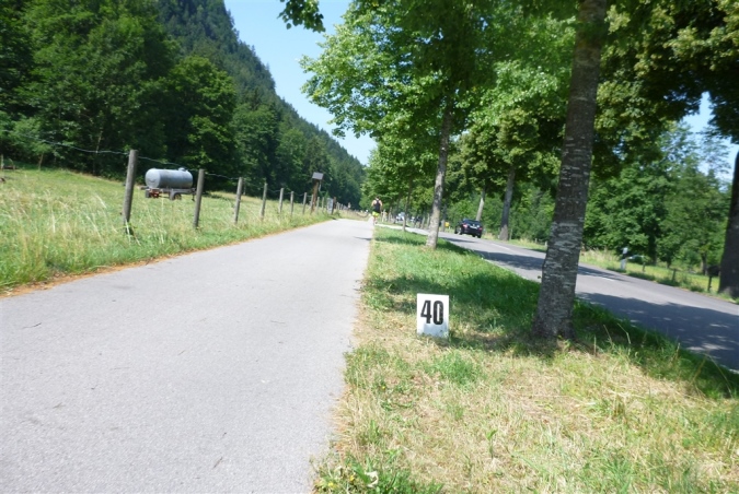 Den putzigen asiatischen Dreikäsehoch, der, besser die, mir die nächste Wasserration reicht, hätte ich glatt mitnehmen können und das nicht nur auf dem Weg zum Schwansee, dem dritten heutigen See. Ja, es ist wirklich ein Wasserlauf, wie ich eingangs schon erwähnte. In Kombination mit der faszinierenden Bergwelt und den Schlössern eine einzigartige Mischung, die diesen Lauf zu etwas ganz Besonderem macht. Teilweise im Uferbewuchs verborgen erspechte ich auf dem Rundweg zwischen den km 35 und 37 immer wieder das Wasser. Stellt Euch die Szenerie vor: Durch das Grün hört Ihr übers Wasser kommend zum zweiten Mal die Alphornbläser, die mit ihren getragenen Weisen dem Ganzen ein fast unwirkliches Flair verleihen. Als ich später davon erzähle, habe ich einen Kloß im Hals, so schön ist das.