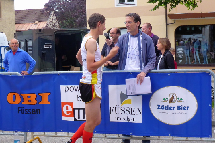 Während ein paar Schritte weiter auf der gesperrten Kemptener Straße die 10-Kilometer-Läufer ihre Runden drehen, lassen wir es uns gut gehen. Es ist ganz schön warm und nur der siegreiche Äthiopier hat keinen hochroten Kopf. Um 18 Uhr sind die Halbmarathonis dran. Wir verlassen allerdings vorher den gastlichen Ort, um noch ein Stückchen Richtung Königsschlösser zu fahren. Das Ergebnis ist ernüchternd: für mich sind dort zu viele Menschen, die Parkplätze sind brechend voll. Eilig flüchten wir in unser ruhiges Hotel am Alatsee.