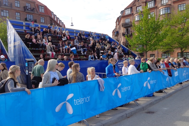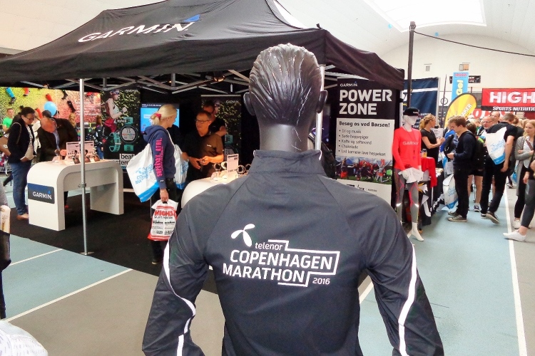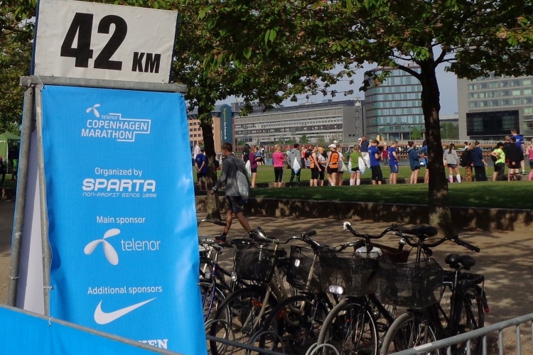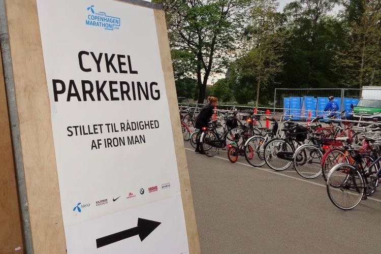 Die Marathonmesse findet am Gelände des Østerbro Stadions statt. Hier hat man reichlich Platz. Viele Ausrüster und Marathonveranstalter präsentieren sich, Parkplatz für Fahrräder gibt es genug. Der München-Marathon macht mit Dirndln auf sich aufmerksam, Wolfsburg setzt auf VW. Okay, das überrascht jetzt niemanden. Auf einem mehrere Meter langen Banner sind die Namen der Teilnehmer aufgelistet, zur Abwechslung alphabetisch nach dem Vornamen gereiht.