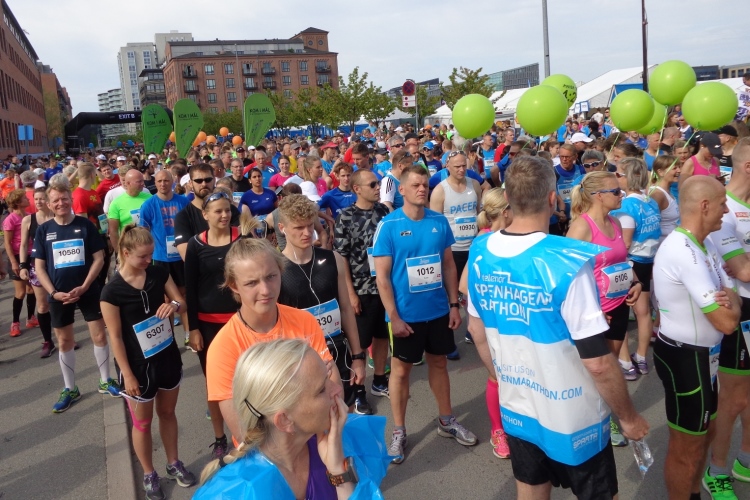 Die Sonne scheint und es ist noch recht kühl und windig, als wir kurz vor 9h am Sonntag das Hotel verlassen. Den H.C. Andersen Boulevard stadtauswärts, darauf werden wir in Kürze stadteinwärts laufen. Über die Langebrücke geht es in die Startaufstellung auf der Islands Brygge. Zwischen Fahrbahn und Ufer des Sydhavnen ist genug Platz für alle 9.383 Marathonstarter.