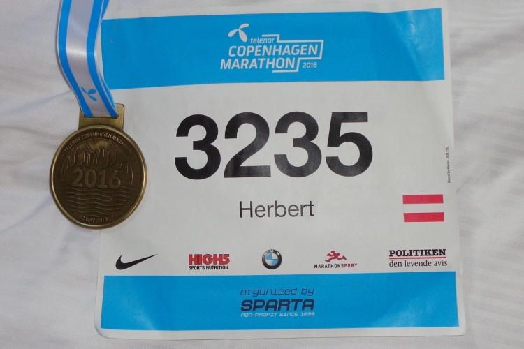 Sofort bekomme ich eine Wasserflasche ausgehändigt und die Medaille umgehängt. Müsliriegel werden ausgegeben und eine Flasche mit gefrorenem Proteintrink. Den kann ich mit dem Wasser schnell auftauen, strecken und seiner Bestimmung zuführen.