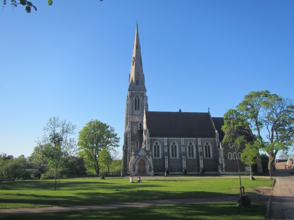 Nun spaziere ich langsamen Schrittes über die Østerallee, mache einen Abstecher in den Park und schlendere weiter zu den Esplanaden. Vorbei an der St. Albans Kirche sind es nur rund 500 m entlang der Uferpromenade „Langelinie“ bis zur Kleinen Meerjungfrau. Das heutige Postkartenwetter hat viele Spaziergänger und natürlich Touristen angelockt, die in dichten Trauben davor stehen.