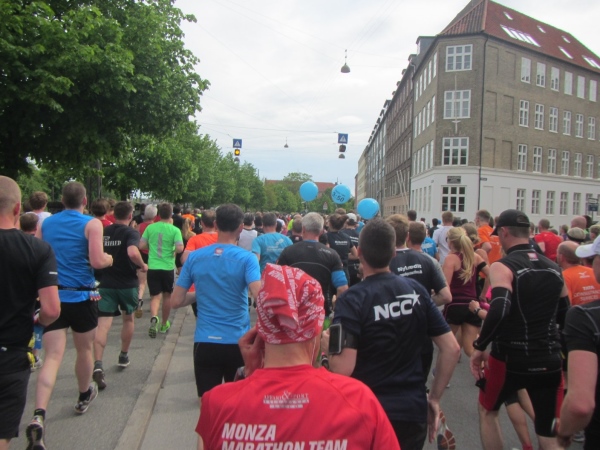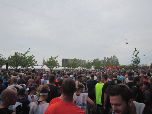 Im Gegensatz zu vielen anderen Marathons spüre ich hier am Start in Kopenhagen keine Sekunde irgendwelche Hektik. Die Läufer sind auch nicht aufgeregt, fast sachlich gehen die Dänen an die Sache ran. Vielleicht ist es auch der nahende Wetterumschwung, den manche spüren – auch unter den Marathonläufern soll es Rheumatiker geben.