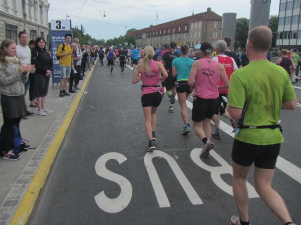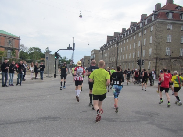 Die nächste eckige Wende kommt knapp vor Kilometer 11: der Kurs führt nach Süden und anschließend die Nørrebrogade wieder nach Osten. Die angebotene Labestation erneut nach Kilometer 11 erklärt sich daraus, dass diese bei Kilometer 36 erneut passiert werden wird.