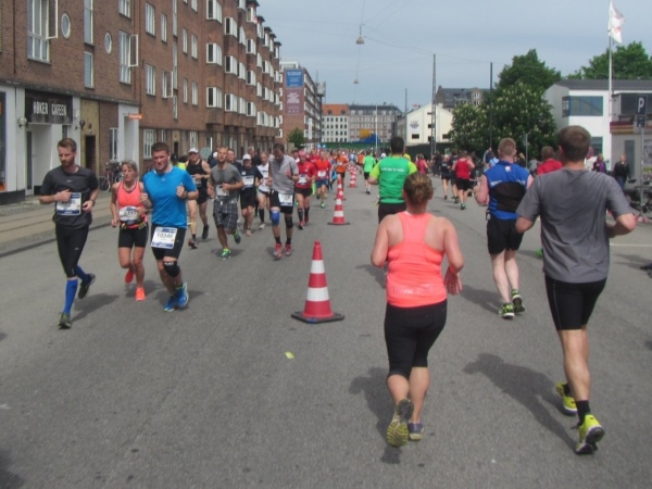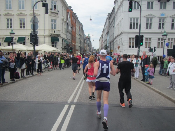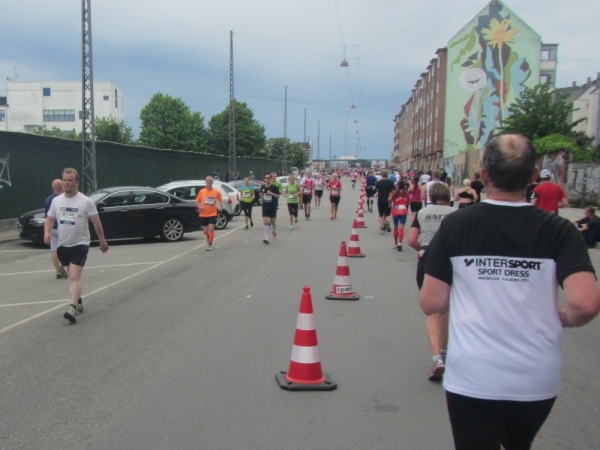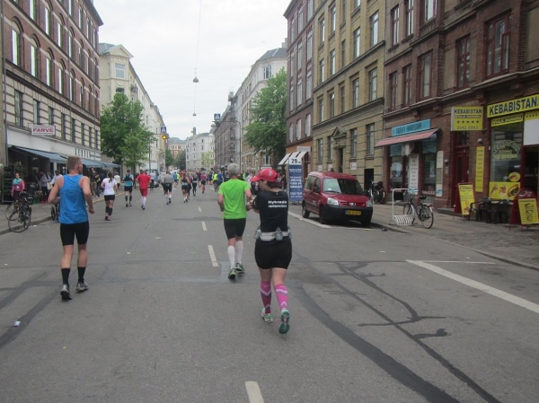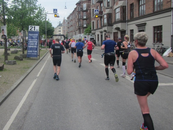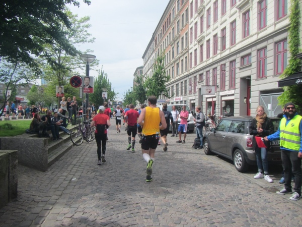 Der Marathonkurs führt über die Knippelsbro nun wieder südwärts bis zur Vester Voldgade. Immer wieder werden gerade Straßenverläufe durch „eckige“ Abzweigungen unterbrochen. Auf solchen 90 Grad-Wenden verliert man Zeit, auch wenn sich die Straßen verjüngen und die Läufergruppe vor einem ins Stocken kommt.