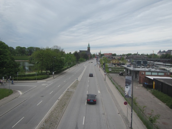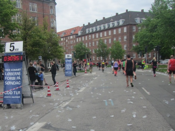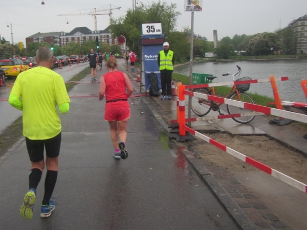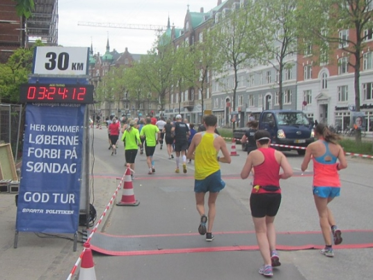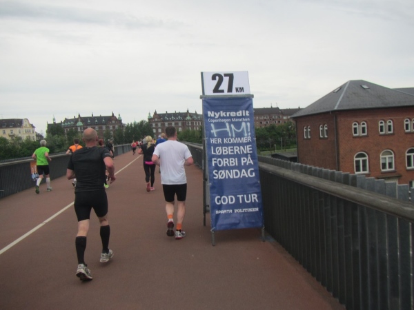 Bei der Østerport-Station geht es wieder über eine Brücke, der Kurs führt erneut nach Westen. Die Kristianiagade hatten wir nach 5 km erreicht, nun befindet sich rund 2 Stunden später hier auch die 28 km-Marke. Es geht auf der gleichen Strecke, dem Strandboulevarden, weiter wie zwischen Kilometer 5 und 6 am Anfang des Marathons. Bei Kilometer 29 erfolgt erneut eine Abzweigung, die nur einen weiteren Kilometer lang ist.