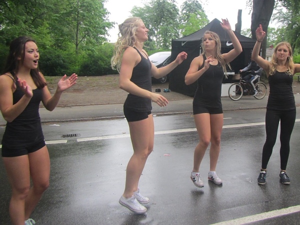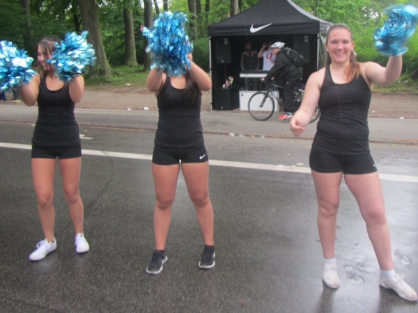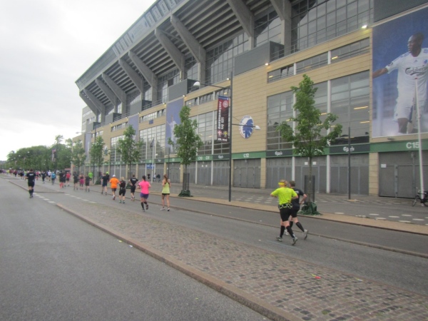 Erneut laufen wir beim Fußball-Stadion des FC Kopenhagen vorbei, inzwischen hat es längst angefangen zu regnen. Die Cheerleader-Group am Frederik V’s Vej sorgt für Stimmung, die aber nicht so recht rüberkommt. Der Marathon wird für mich noch eine gute Stunde dauern, schon jetzt bin ich komplett durchnässt. Aber den anderen auf der Strecke geht es nicht besser. Wie werden wohl die Fotos ausfallen? Die Verglasung vor dem Objektiv wische ich ständig ab.