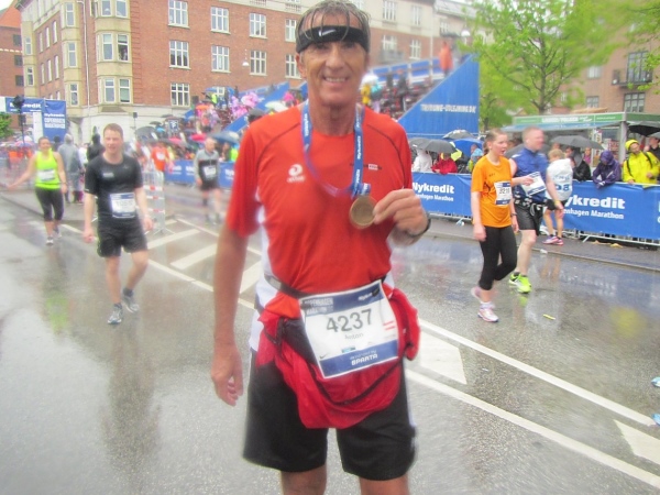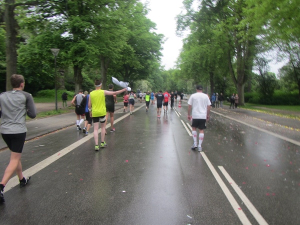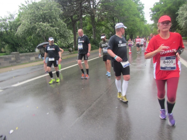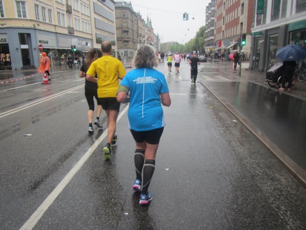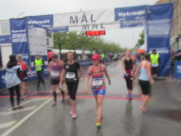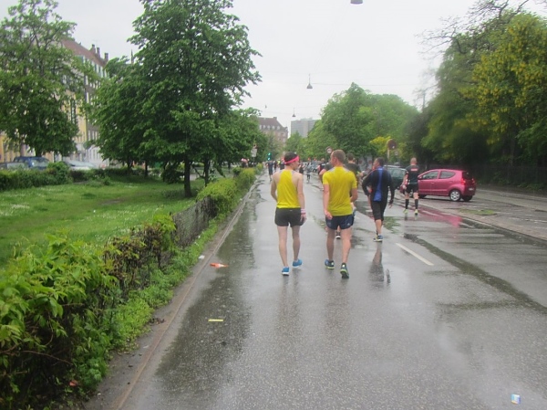 Ich laufe mit 4:58:59 ins Ziel, netto ergibt das eine Finisherzeit von 4:55:27. Als ich das Gelände verlasse, kommen mir noch Hunderte Läufer entgegen. Mein persönlicher Eindruck über den Kopenhagen-Marathon ist positiv: Die Menschen in der Stadt nehmen großen Anteil am Event, die Strecke ist schön, aber auch sehr eckig. Die Versorgung ist gut, Wasser, Iso, Bananen- und Orangenstücke werden geboten. Neben dem Zieleinlauf sind Duschen mit Heißwasser aufgestellt. Schade, dass der ganze Event durch den Schlechtwettereinbruch etwas getrübt wurde. Sieht man auch den Regen positiv, so hat der Himmel halt vor Freude über 35 Jahre Erfolg seitens der Veranstalter geweint.