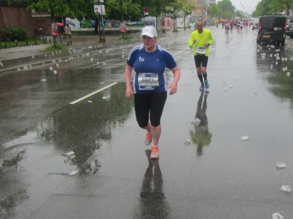Die folgenden Streckenabschnitte bei Kilometer 34 bis 37 bin ich heute schon einmal gelaufen. Nur war das Feld zu diesem Zeitpunkt viel dichter, jetzt ist es gelichtet. Nur die Langsamen sind beim strömenden Regen noch auf der Strecke.