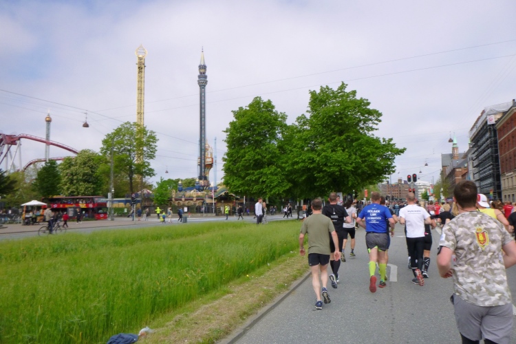Den Red-Bull-Stand bei Kilometer Vierzig nehme ich noch mit. Flügel sind genau das, was ich jetzt brauche, doch leider hindert mich der vom verschütteten Nass klebrige Boden am Abheben. Anlauf zur letzten Brückenquerung und am Tivoli vorbei, 1843 eröffnet und einer der ältesten Vergnügungsparks weltweit. Zu dessen Attraktionen gehören Achterbahnen, Fahrgeschäfte, Kabaretts und Pantomimentheater sowie ein 80 m hohes Kettenkarussell und 37 Restaurants.