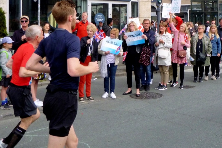 „Kom så“ lautet wieder einmal die Aufforderung an einen gewissen Onkel Martin. Diese Parole ziert die auf der Marathonmesse verteilten Pappschilder für anfeuernde Fans und bedeutet so viel wie „Komm schon! Komm jetzt! Auf geht’s!“ Ich setze dem das französische „comme-ci, comme-ça“ entgegen, was „so lala“ bedeutet und eigentlich nicht passt, aber zumindest nett klingt.