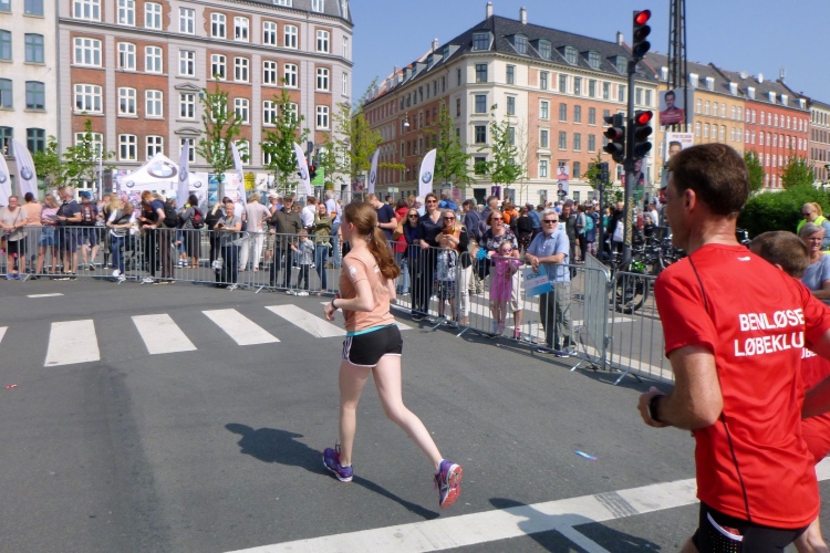 Graham trägt eine dieser kleidsamen Laufhosen, die aus der britischen Nationalflagge genäht zu sein scheinen. Er erzählt, dass fast 80 Prozent der Londoner für einen Verbleib in der EU gestimmt haben. Die junge Mikki, die in den Union Jack gehüllt läuft, möchte hingegen mit der EU nichts zu tun haben. Die breite Nørrebrogade ist für sich allein schon ein Hit. Hier liegt auch eine Filiale der Restaurantkette „Halifax“. Weil Judith das Online-Infomagazin genau studiert hat, werden wir hier später einen vorzüglichen Burger verspeisen, für Marathonteilnehmer kostenlos. Und damit nicht genug. Auch das Konkurrenzunternehmen „Jagger“ macht mit. Also am Sonntag und am Montag gratis schlemmen. Mein Tipp: Schaut euch die Vergünstigungen im Magazin genau an. Viele andere Restaurants geben Rabatt. Es lohnt sich.