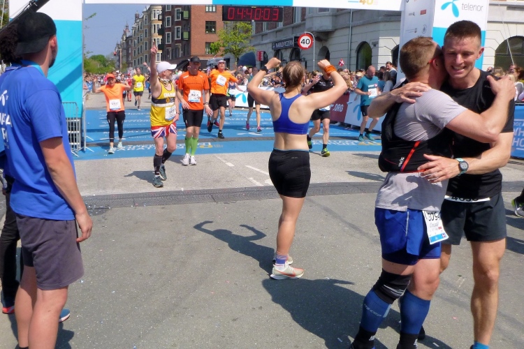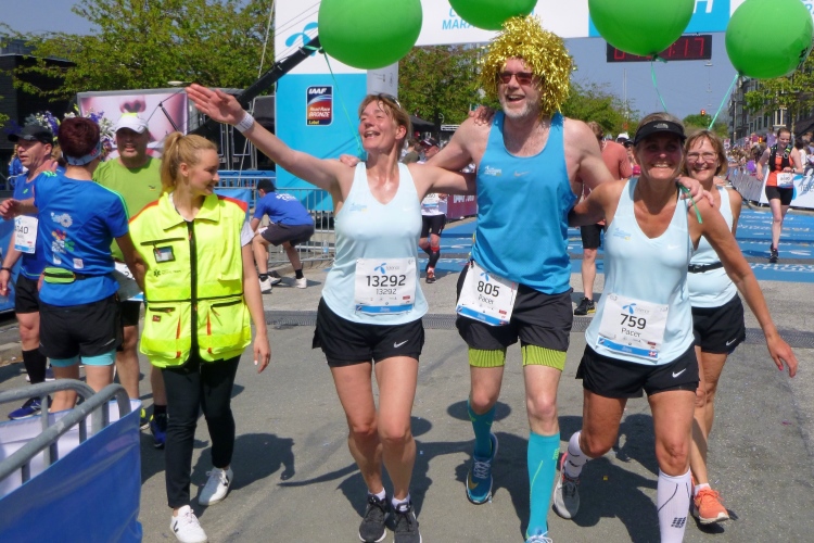 Ja, es stimmt wohl, auf der anderen Seite müssen wir noch eine Schleife drehen, um unter der Brücke hindurch zu kommen. Spannend, wie sich der letzte Kilometer in die Länge ziehen kann. Noch vierhundert Meter, dann durch ein Zuschauerspalier. Unglaublich, es ist wieder mal geschafft.