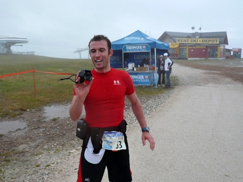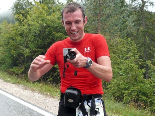 Vor mir einer im roten Shirt und schwerer Kamera. Andreas Leiter hat die Aufgabe, einen Film über den Lauf zu drehen, den er dann später auf die Homepage des Veranstalters stellen wird. Wir unterhalten uns über das Rennen, und das bei laufender Kamera.