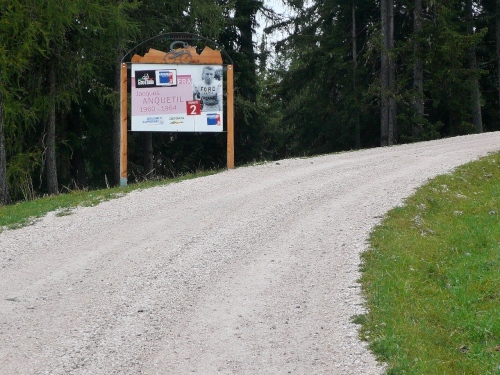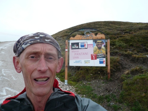 Kehre eins mit dem Konterfei von Marco Pantani: Dazu sage ich aus gutem Grund nichts. Weiter. Dann kommt ein Schild mit einem Smiley. Der letzte Kilometer. Und der hat es in sich.