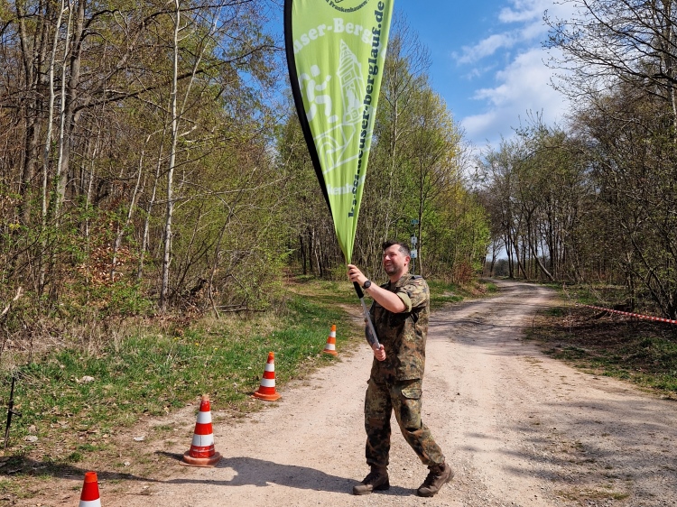 Rund um den berüchtigten Marathonkilometer 30 ist der Berglauf voll im Gange. Mehr als 10 Kilometer lang wechseln wir ständig zwischen 350 und 450 Höhenmetern über Meeresspiegel hin und her. Irgendwo beim Fernsehturm auf dem Kulpenberg haben wir die höchste Stelle des KBL erreicht. Bis zur nächsten Getränkestelle an der Siebenwegekreuzung dauert es auch sich ziemlich langziehende sieben Kilometer. Nicht nur Ulrike freut sich hier bei den Soldaten über eine halbe Banane. Weiter läuft es auf gut befestigten Forstwegen hoch und runter. Flachlandbewohner Andreas aus Wittenberg wundert sich, dass ich die Anstiege noch relativ gut hochlaufen kann. Mein Hügeltraining im Winter reichte wieder mal aus, um am KBL zu bestehen. Ja, Berg, du lachst und prustest noch, aber du wirst dabei schon ruhiger.