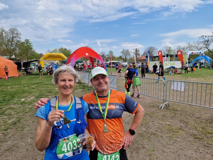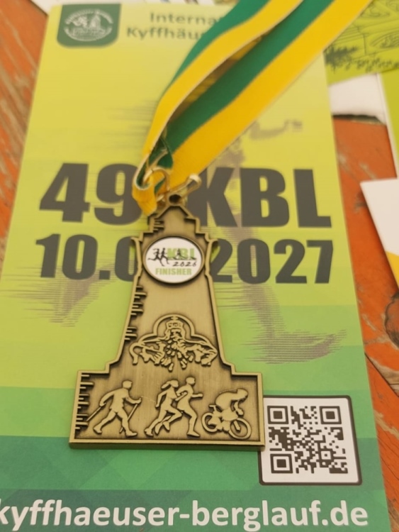 Erleichtert aufatmend bekomme ich eine Medaille um den Hals und gehe kurz in mich. Vor zehn Jahren bin ich das letzte Mal beim KBL-Marathon unter vier Stunden gelaufen. Heute bin ich froh, unter fünf Stunden geblieben zu sein. Gut, ich bin zehn Jahre älter aber die oft gestellte Frage, ob die neuere Strecke, die vor fünf Jahren zum ersten Mal gelaufen wurde, schwerer ist als die alte, kann ich mit ja beantworten. Ich empfinde die Schwierigkeitsgrade mit dem langen Anstieg zum Kyffhäuser Denkmal und das zähe Auf und Ab danach bis vier Kilometer vor dem Ziel als schwerere Herausforderungen, die so auf der alten Strecke nicht da waren. Vielleicht liegt es auch daran, dass früher der Kyffhäuser von der Südseite her hinaufgelaufen wurde. Jetzt passiert das von der Nordseite her. Und da meine ich schon beim Autofahren zu spüren, dass die Nordseite steiler als die Südseite ist. Ja, Berg lache nur über die laufphilosophischen Gedankengänge. Eine Herausforderung warst du immer und wirst du immer sein. Bei der zweiten Frage gehen die Läufermeinungen noch mehr auseinander: Welcher Marathon ist schwerer, der beim Kyffhäuser oder der beim Rennsteig? Das will ich drei Wochen später beim Rennsteiglauf nochmal überprüfen.
