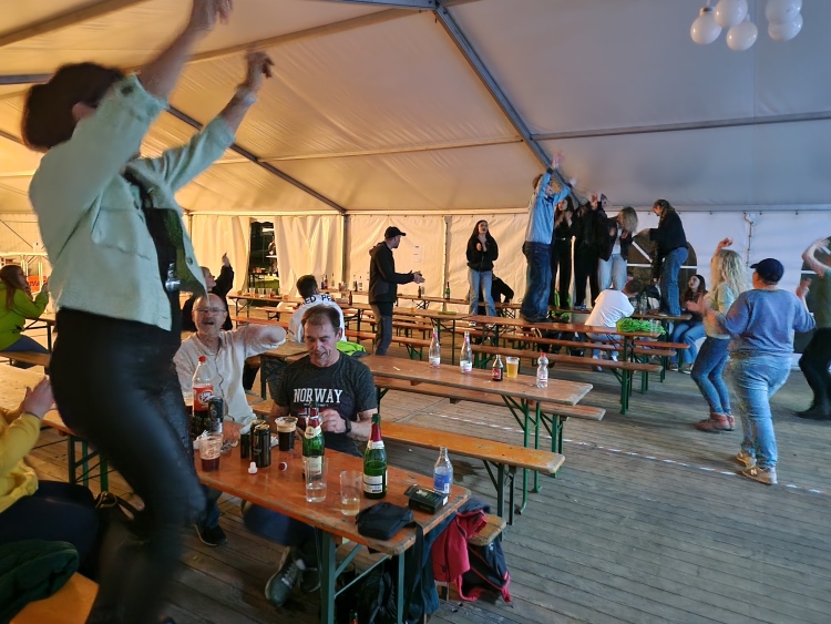 Die familiär feierliche Partystimmung zieht sich bis in den späten Abend im Festzelt hin. Da wird bei Bier und bei Bratwurst zu zünftiger Musik auf den Dielen und auf den Bänken getanzt. Der kleine Bruder KBL eifert auch hier dem großen Bruder Rennsteiglauf ehrenvoll nach. Dann muss sich verabschiedet werden. Man sieht sich wieder, entweder in drei Wochen beim 53. Rennsteiglauf oder am 10. April 2027 beim 49. Kyffhäuser Berglauf.