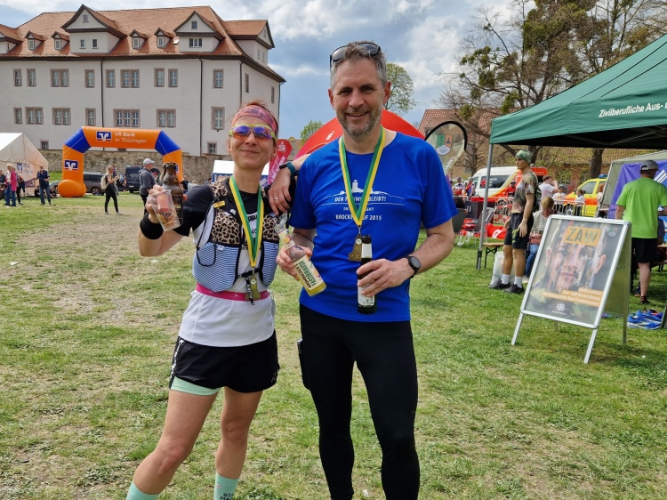 Wir genießen das herrliche Frühlingswetter in der Stadt und an ihren Rändern mit dem vielen frischen Grün und der weißen Baumblütenpracht, bis es am Freitagnachmittag auf den Schlossplatz zur Startnummernabholung geht. Da ist denn auch das mehrfache Grüß Dich und Hallo, denn wir gehören zu den Wiederholungstätern beim Kyffhäuser Berglauf (KBL). Bei meinem ersten Start hier im Jahr 2002 gab es noch gar keinen Marathon. Es war ein 38 Kilometer langer Berglauf. Mein Respekt vor dem KBL war riesig. Ich erinnere mich noch gut an meine starken Glücksgefühle, als ich wohlbehalten ins Ziel auf dem Schlossplatz eingelaufen war.