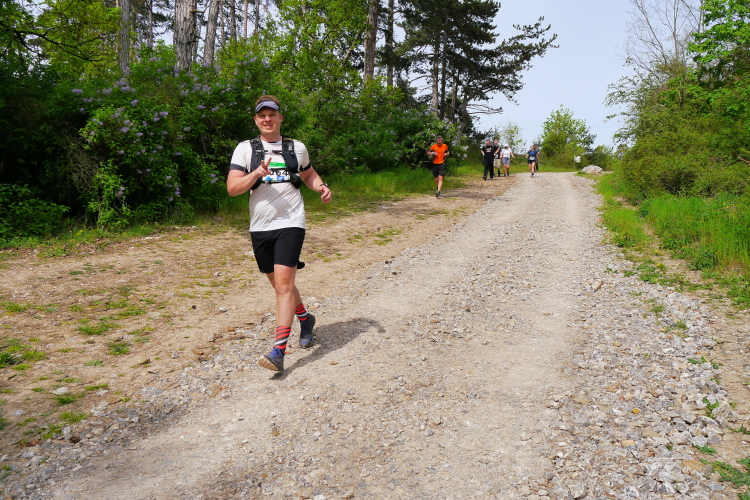 Die Marathonis sind unterdessen durch die Reichspfalz Tilleda, in der ein Mittelaltermarkt abgehalten wird, gelaufen. Sie sind auch den sechs Kilometer langen Anstieg mit 300 Höhenmetern zum Kyffhäuser Denkmal hoch. Sie haben dort den Haferschleim und vielleicht auch ein Bier genossen. Jetzt laufen sie auf Trails und auf Wanderwegen runter und rauf. Nach der 30 Kilometermarke tut das vielen weh. Aber das Ziel rückt näher.