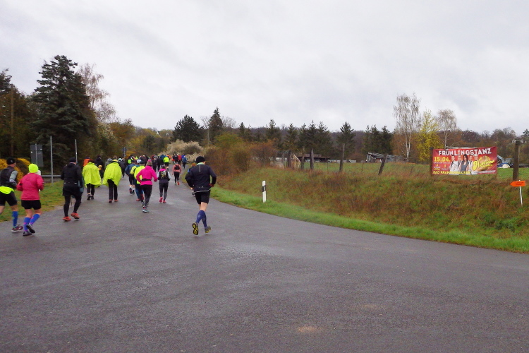 Danach dann auf dem Schwarzer Weg und dem Tilledaler Steg bergab. Um mich herum sind meist die gleichen Läufer. Ab und zu ein kurzer Plausch, mit Ines und Cliften (Lauf gegen Leiden) verabrede ich mich im Ziel auf ein Bier. Im hinteren Feld des Halbmarathons läuft es gemütlich. Aber uns überholen einige Marathonis: drahtige jüngere Männer, die scheinbar mühelos auf eine Endzeit um die 3 Stunden zulaufen. Einer der Marathonis, drahtig aber nicht mehr ganz jung, grüßt mich süddeutsch mit „Servus.“ Ich erwidere den Gruß mit meinem nordischen „Moin.“ Ein paar Meter forciere ich und laufe ihm hinterher. Bald halte ich nicht mehr mit und werde wieder gemütlich.