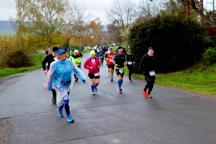 Wir haben uns in diesem Jahr für den Halbmarathon entschieden. Dieser hat von allen Rennen die meisten Teilnehmer: 235. Den Marathon werden knapp 200 Teilnehmer bewältigen. Die Marathonis sind schon eine Stunde unterwegs, als wir pünktlich um 9:30 Uhr auf die Reise geschickt werden.