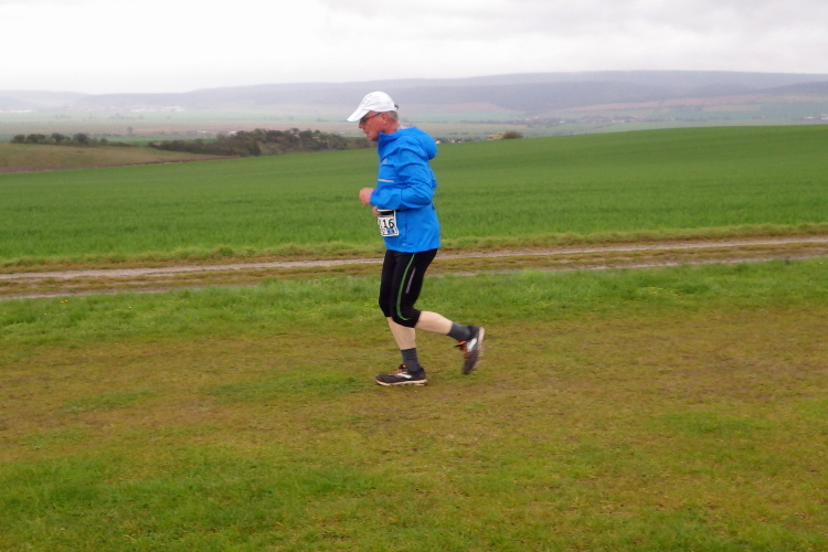Nach drei Kilometern Anstieg läuft es jetzt drei Kilometer bergab. Das ist auf dem sanften Wiesenweg des Naturflugplatzes ganz angenehm. Nach sechs Kilometern gibt es im Dorf Udersleben die erste Getränkestelle. Tee, Wasser oder Cola? Das angebotene Bier lassen die meisten Läufer links stehen.